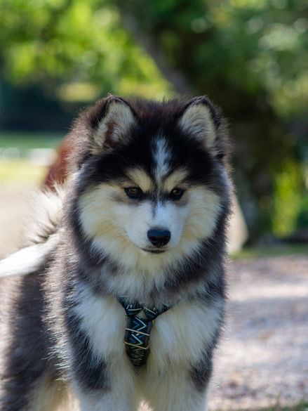 Les caractéristiques physiques telles que le marquage de robe et la morphologie générale sont celles héritée du husky.